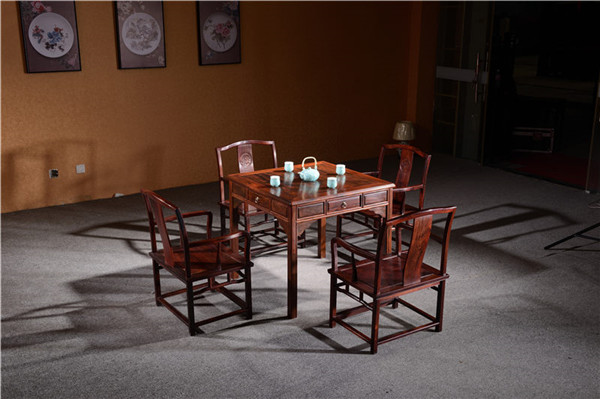 在搬移红木家具的过程中,对于餐桌、书桌、茶桌等桌子类家具,最好都能从桌子脚处着力,这样可以放置桌面板与桌脚分裂。
