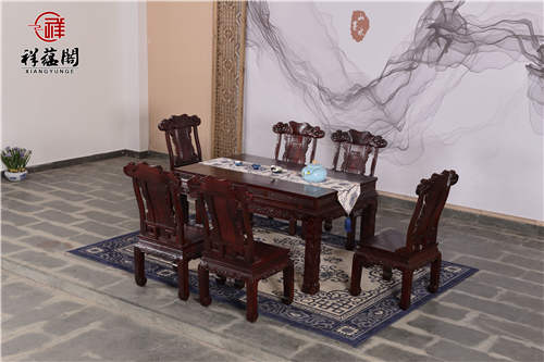 这款红木家具五件套的名字叫做黑酸枝西餐桌红木家具长餐桌七件套xcz-001。这款黑酸枝西餐桌红木家具长餐桌七件套xcz-001采用高档的印尼黑酸枝有祥蕴阁的手工艺人们手工打造而出,耗时三个月只为打造最好。