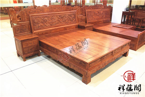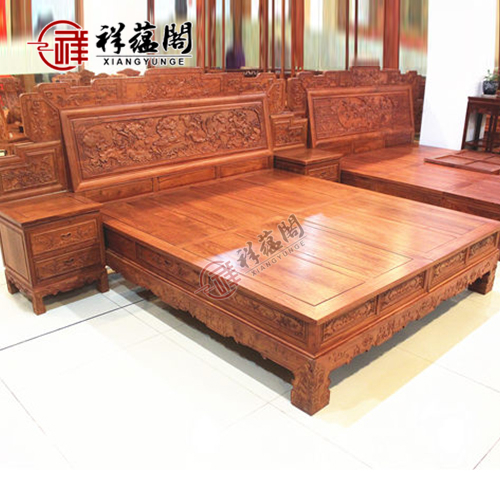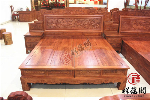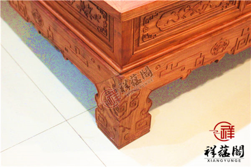这款产品名称叫【黄花梨木荷花檀雕大脚床】新款_花梨木荷花檀雕大脚床2019年新款,是我们祥蕴阁热销红木茶桌椅产品之一