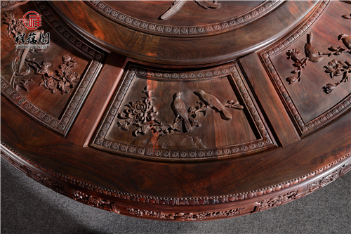 这款餐桌组合雕花精美繁复,尊贵无比,体现了祥蕴阁精湛的红木制艺,一套餐桌摆放在客厅大气华美,处处凸显了主任的尊贵霸气,十分有面子。