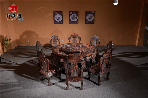 这款精致的家具红木名叫交趾黄檀圆餐桌吃饭桌椅组合cz-j001。这款交趾黄檀圆餐桌吃饭桌椅组合cz-j001采用上等的交趾黄檀大红酸枝经过祥蕴阁手艺人耗时三个月打造而成。